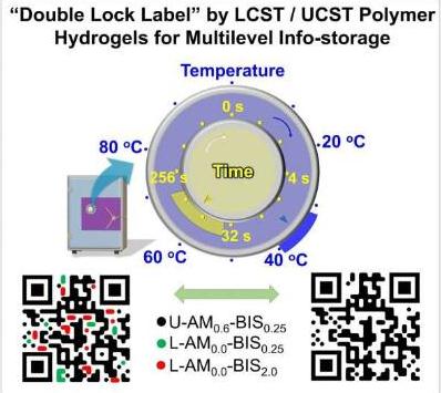 在他們的新型“雙重加密系統”中,他們使用熱響應聚合物水凝膠交聯鍊分子,并在其“間隙”中加入水。高于或低于特定溫度時,透明凝膠由于部分分解而變得不透明。LCST和UCST凝膠分别具有較低或較高的臨界溶液溫度。相保留和臨界溫度可以通過聚合物水凝膠主鍊中–CO–NH2基團的含量來控制。交聯密度決定相變速率。